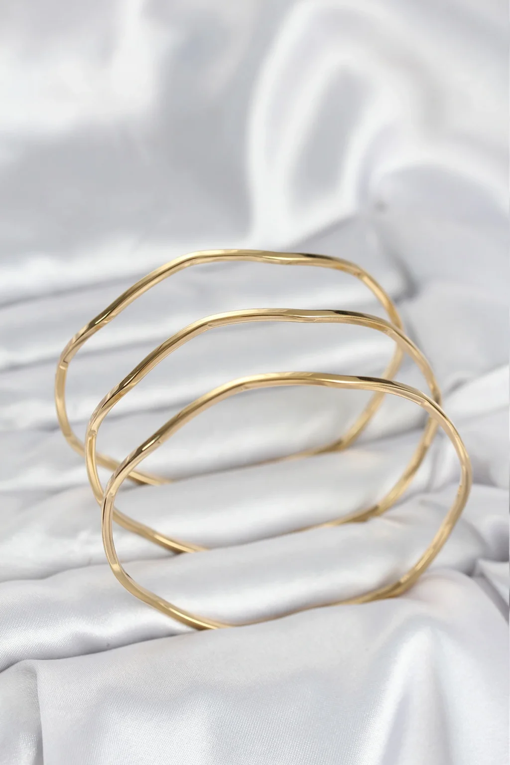 316L Çelik Gold Renk 65 mm Ajda Zikzak Model 3lü Kadın Bileklik