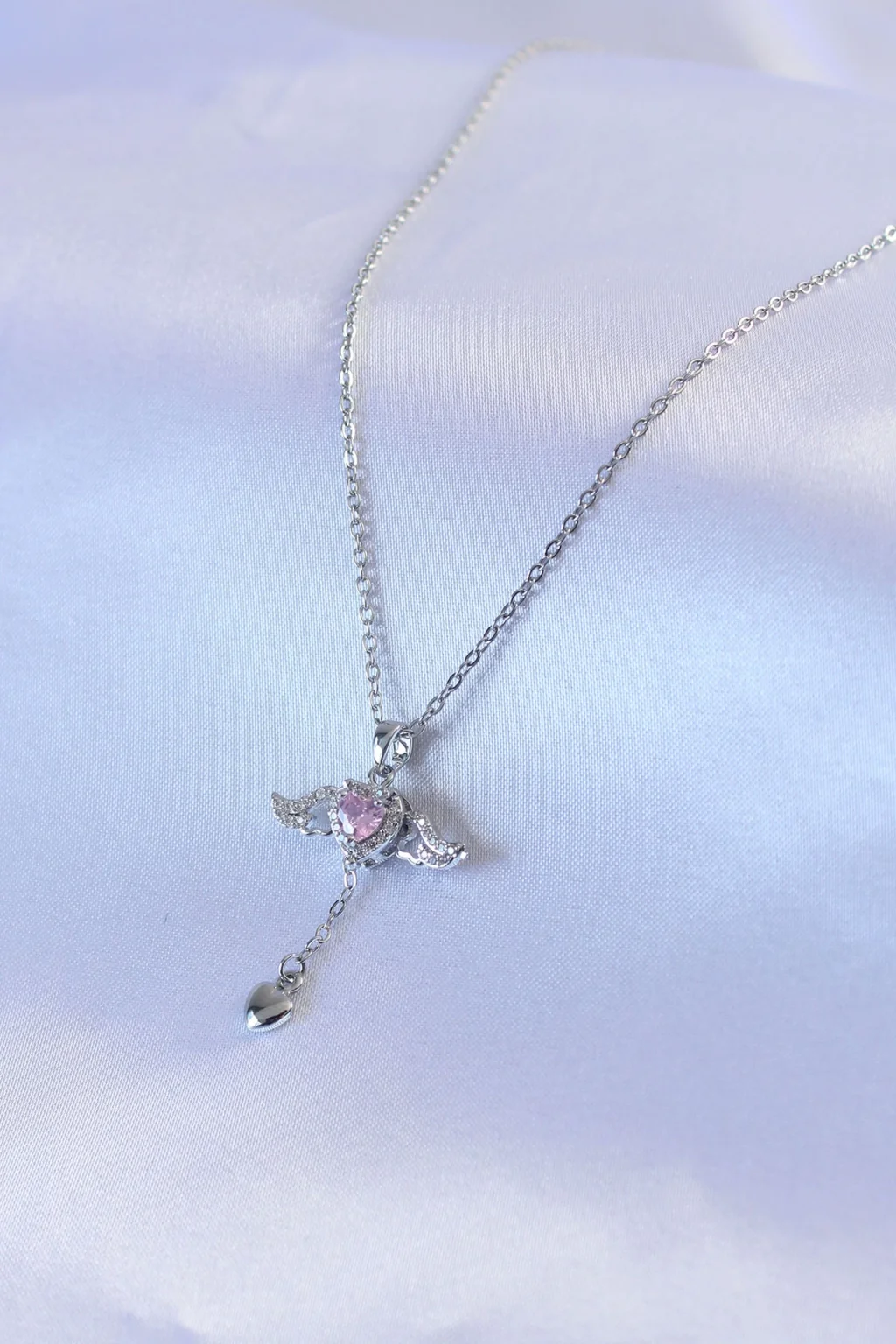 316L Çelik Gümüş Renk Kanatlı Kalp Figür Zirkon Taş Detay Kadın Kolye