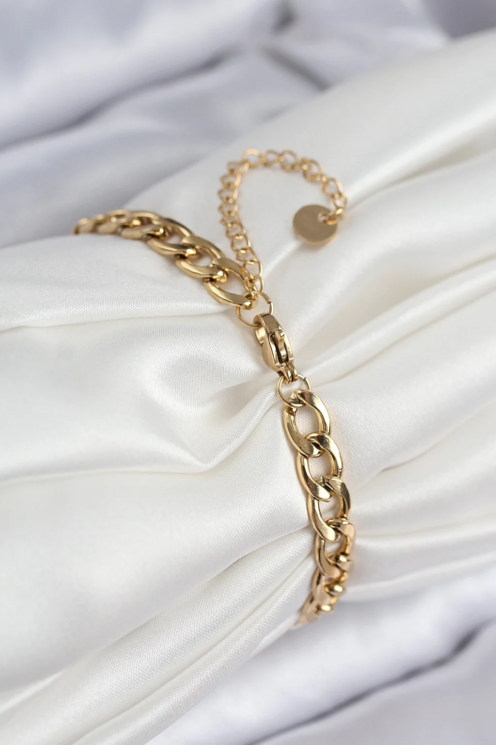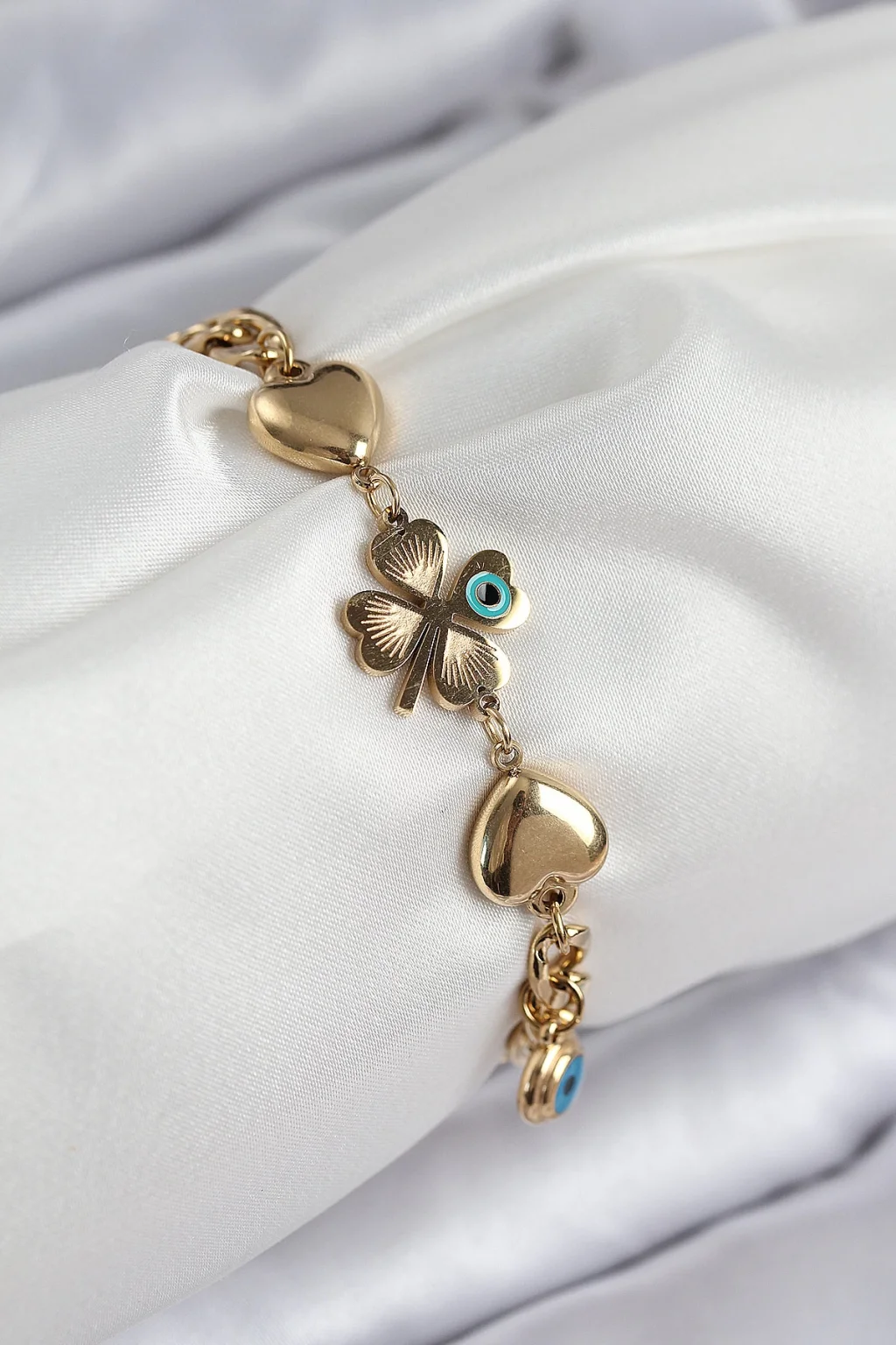 316L Çelik Nazar Boncuk Detaylı Yonca Model Gold Renk Kadın Bileklik