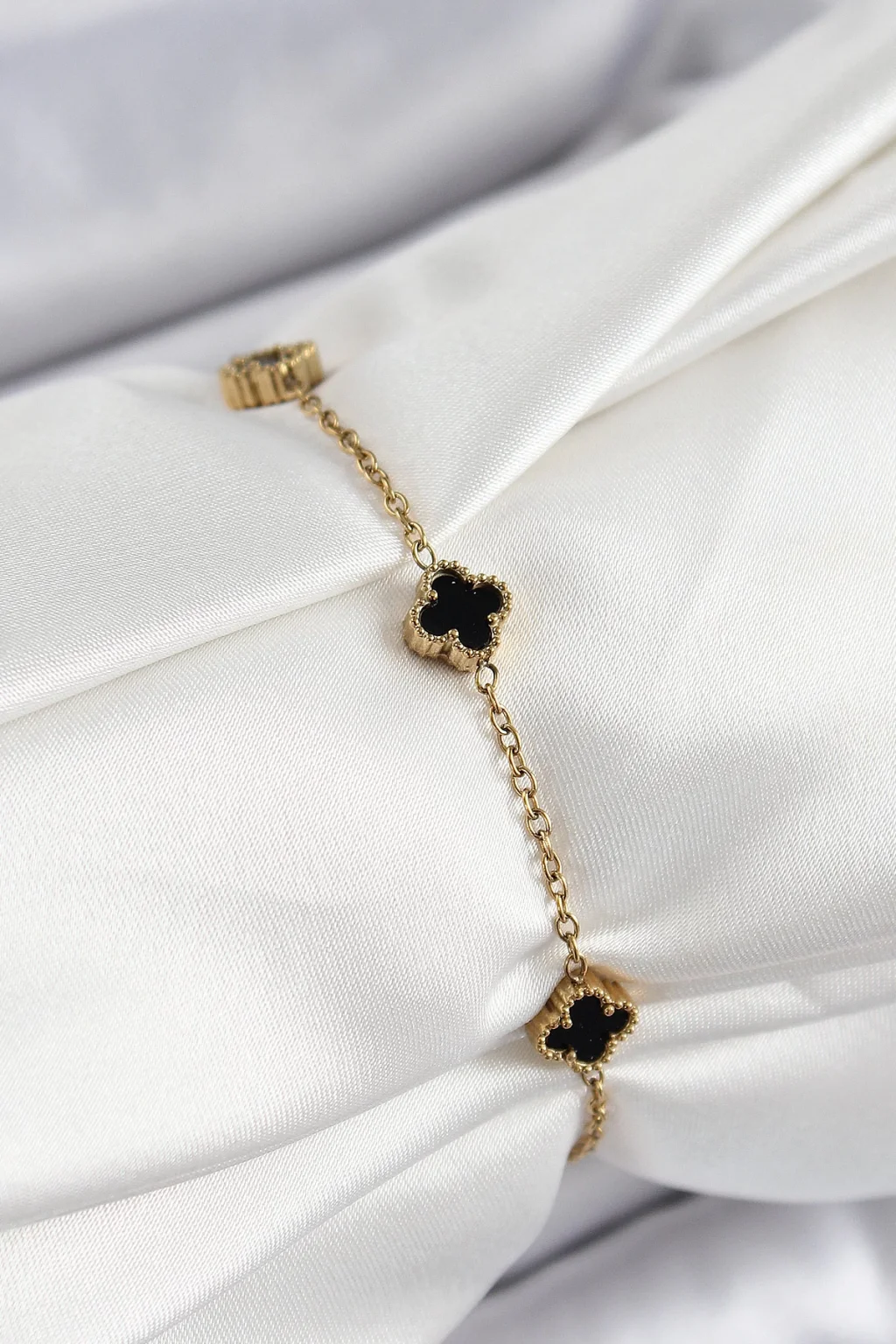 316L Çelik Siyah Sedef Yonca Model Gold Renk Kadın Bileklik