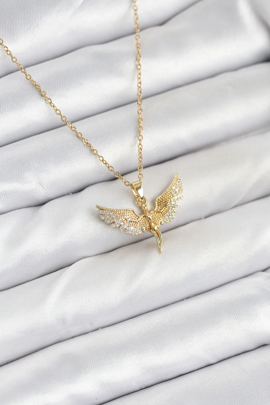316L Çelik Zincir Gold Renk Melek Model Kadın Kolye
