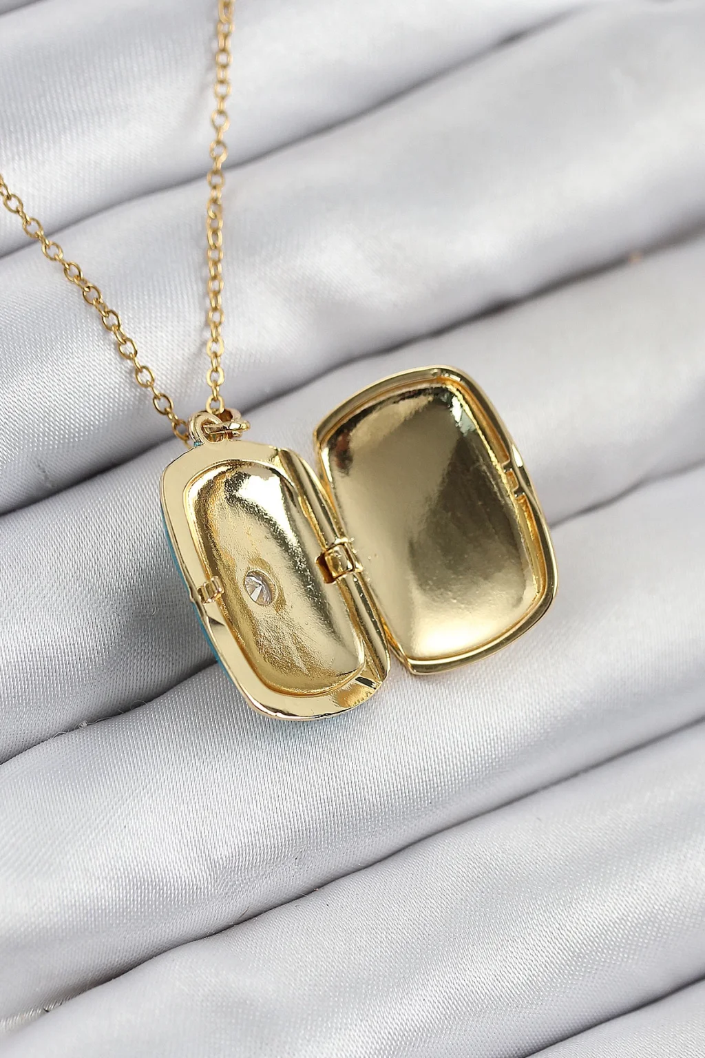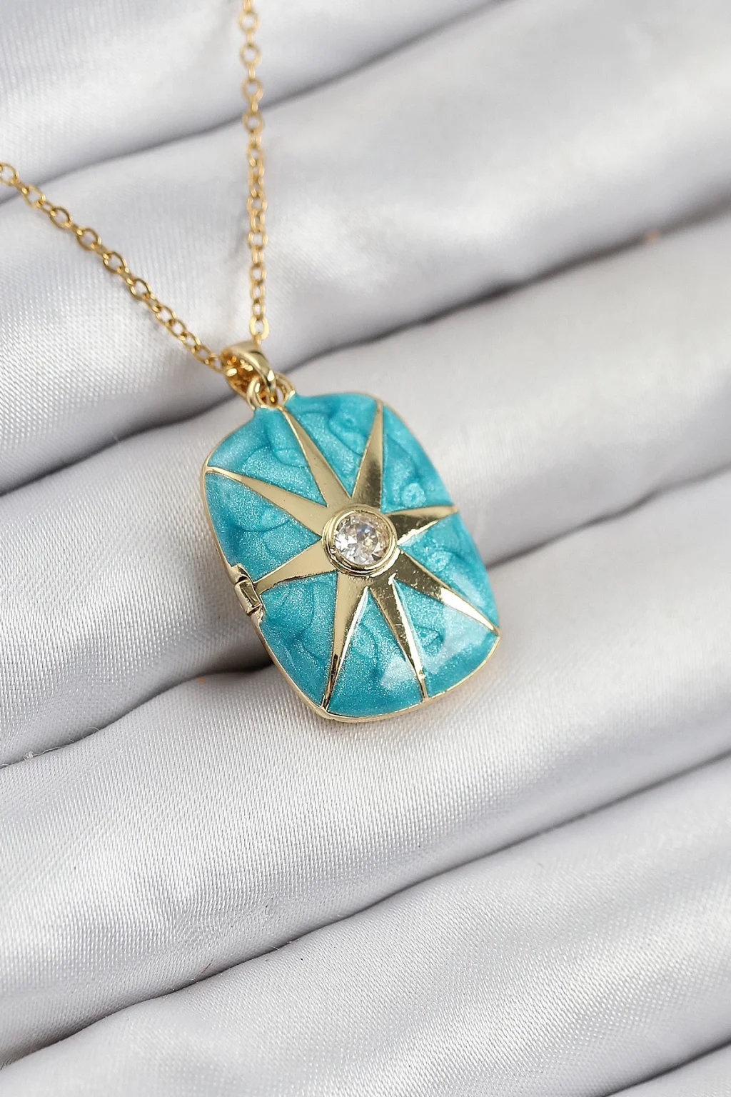 316L Çelik Zirkon Taşlı Açılabilr Kapaklı Kutup Yıldzı Model Gold Renk Kadın Kolye