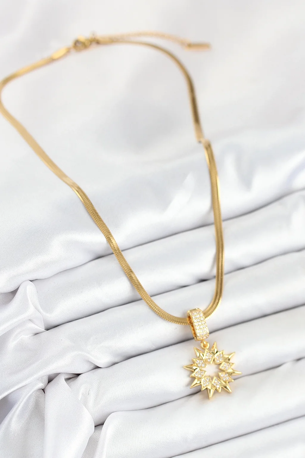 316L Çelik Zirkon Taşlı Yıldız Model Gold Renk Kadın Kolye