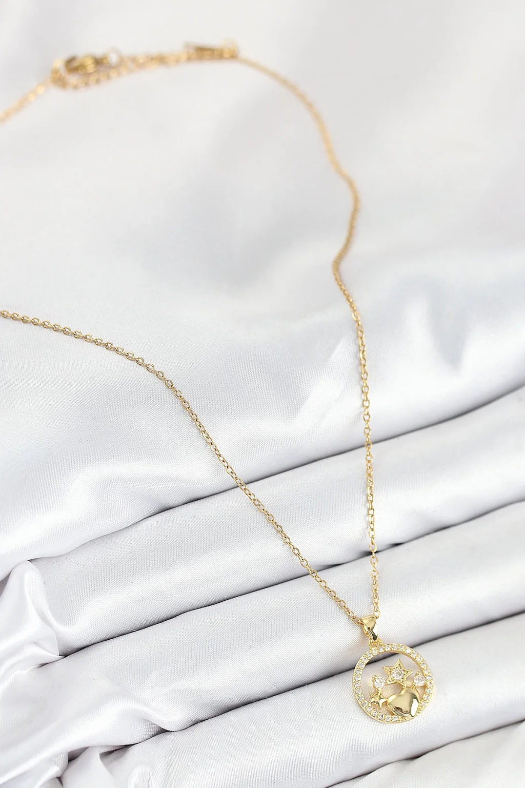 316L Çelik Zirkon Taşlı Yıldız Ve Kalp Model Gold Renk Kadın Kolye