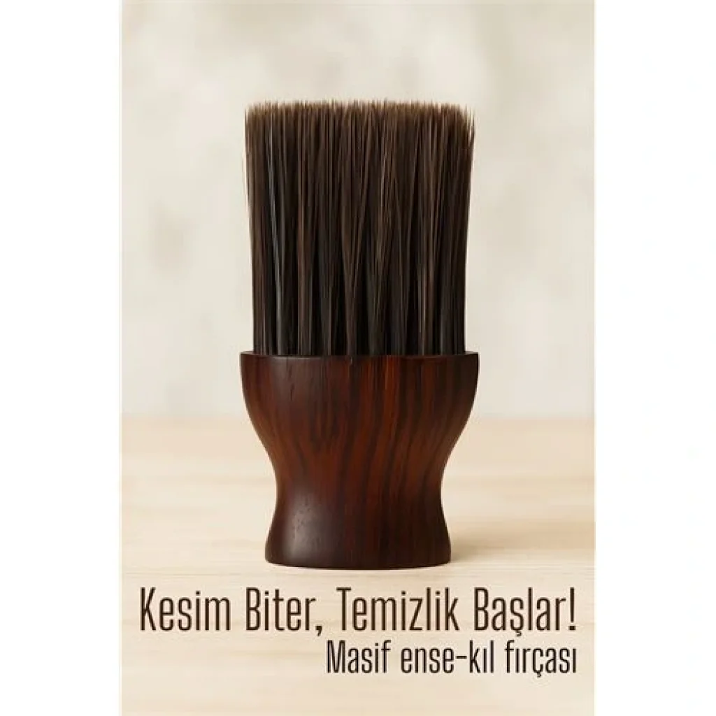 Bu masif ahşap saplı ense fırçası, tıraş sonrası sahneyi devralır. Sentetik yoğun kıllarıyla ense, kulak arkası ve yüz bölgesindeki tüm kıl kalıntılarını nazikçe temizler. Hem müşterin rahatlar, hem senin işin kusursuz görünür.