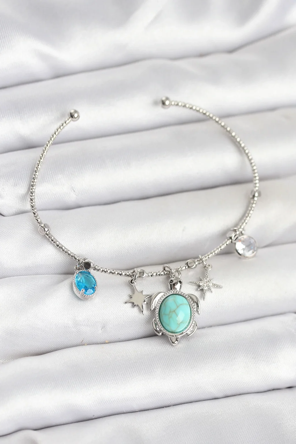 Caretta Caretta Charmlı Gümüş Renk Kadın Bileklik