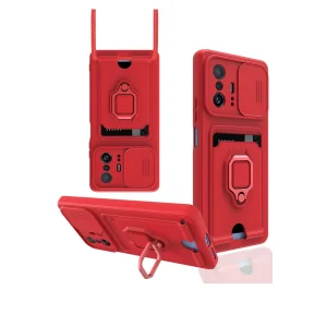 Xiaomi Mi 11t Pro Kılıf Zuma Kartvizitli Yüzüklü Silikon - Kırmızı