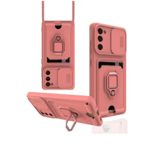 Samsung Galaxy S20 Fe Kılıf Zuma Kartvizitli Yüzüklü Silikon - Pembe