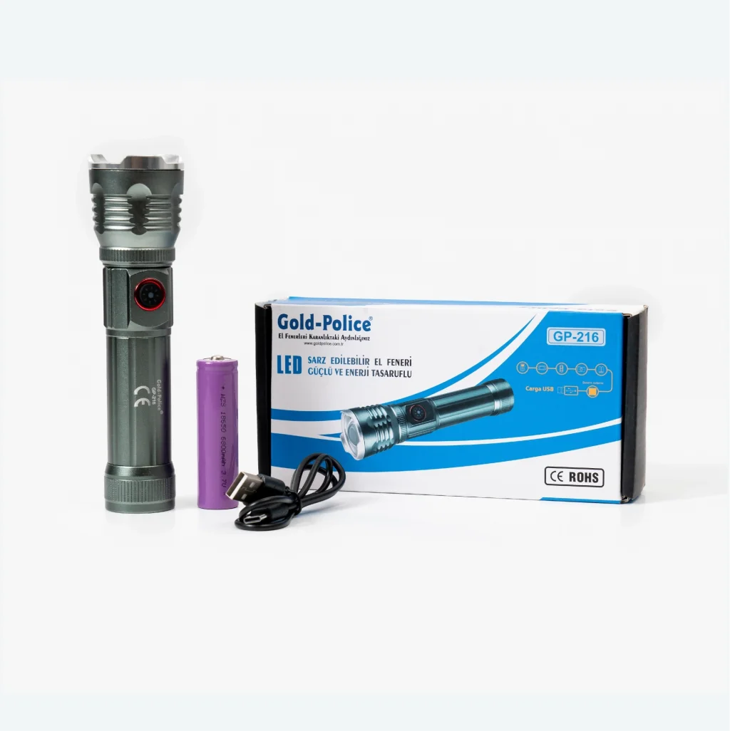 Gold Police GP-216 Şarjlı El Feneri Özellikler: