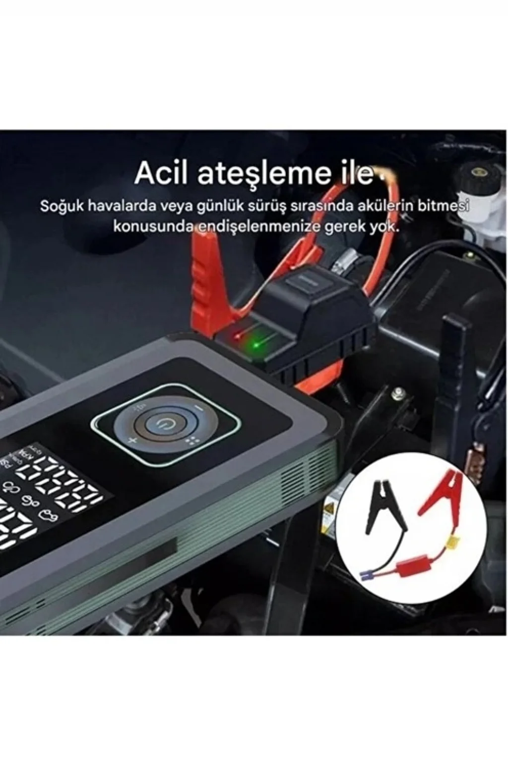 Güçlü Akü Takviye Performansı 12000 mAh yüksek kapasiteli batarya ve 1800A anlık akım ile aracınızın aküsü bittiğinde motoru saniyeler içinde çalıştırır.