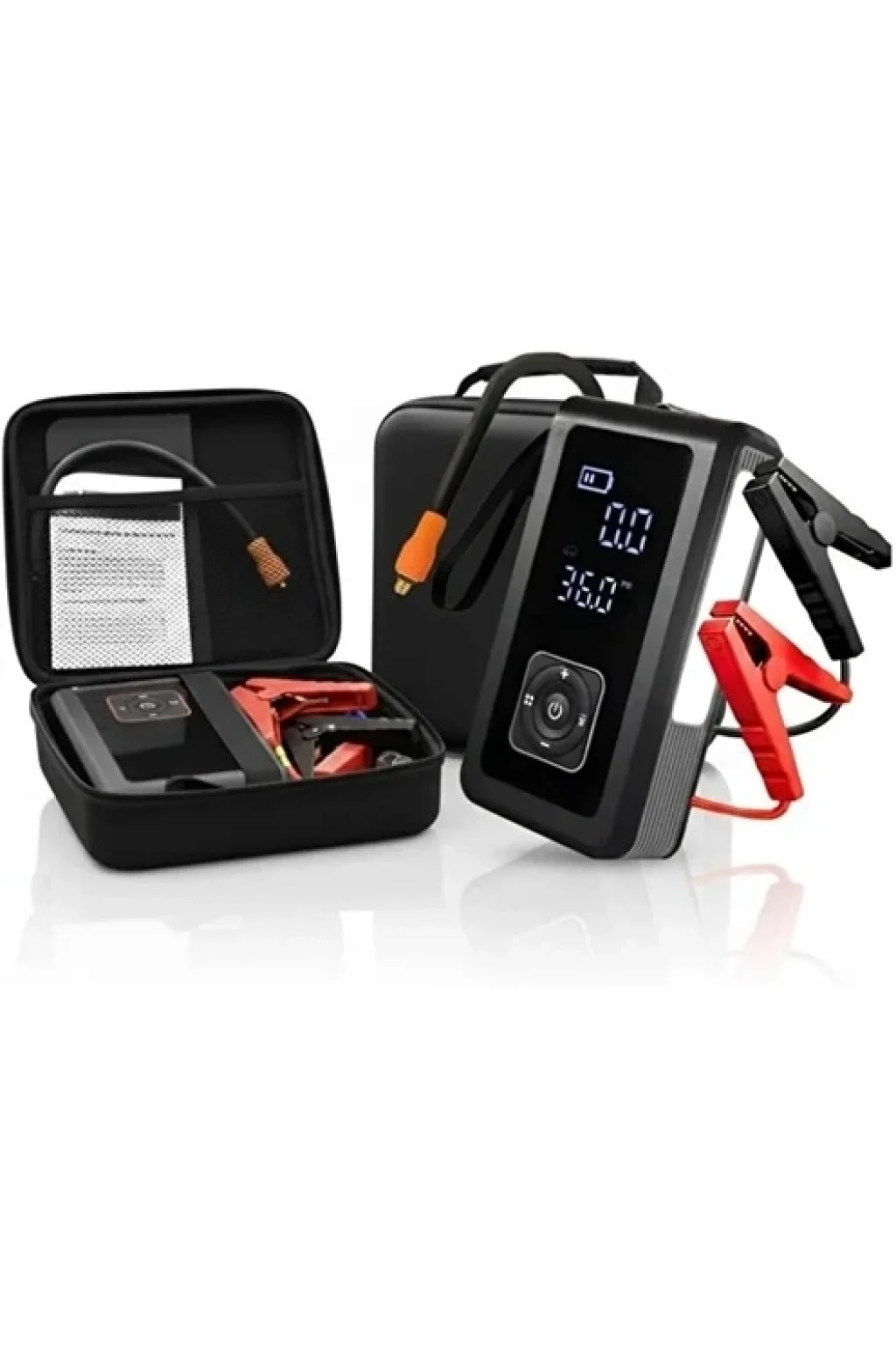 4-in-1 Şarjlı Akü Takviye Cihazı – 12000 mAh Güç Kapasitesi, 1800A Anlık Akım, Dijital Lastik Pompası, Powerbank ve LED Işıklı Çok Fonksiyonlu Acil Durum Oto Yardım Cihazı ROBEVE 4-in-1 Şarjlı Akü Takviye Cihazı, araç sahiplerinin her an yanında olması gereken tam donanımlı bir acil durum çözümüdür.