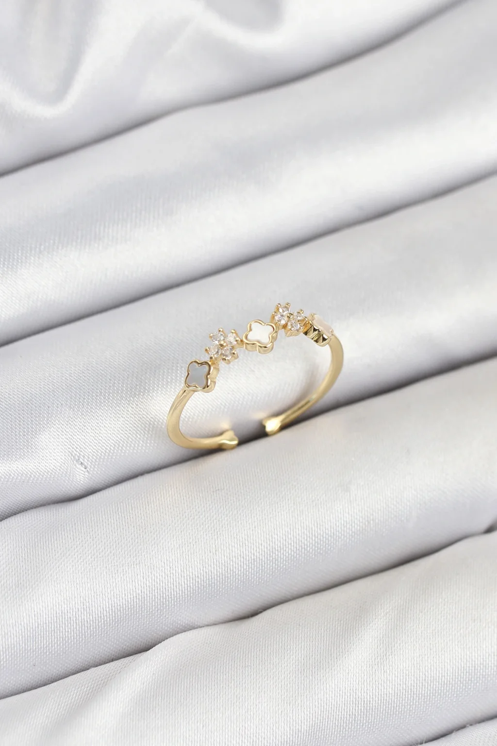 Pirinç Gold Renk Minimal Yonca Detaylı Kadın Yüzük