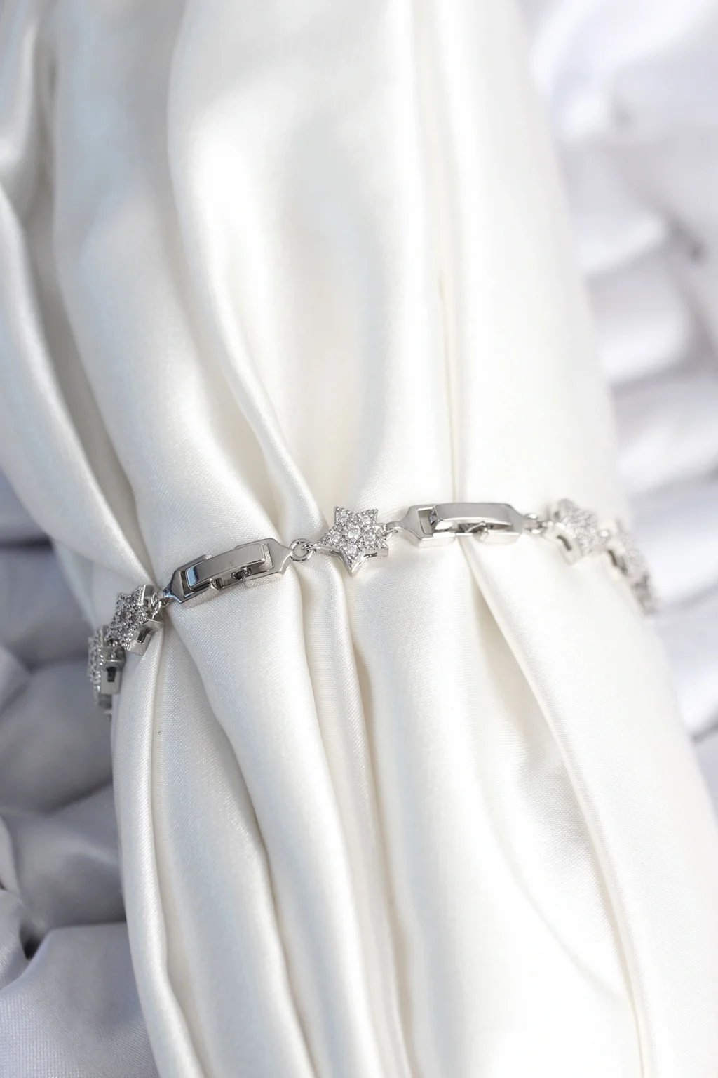 Pirinç Gümüş Renk Yıldız Model Kadın Bileklik