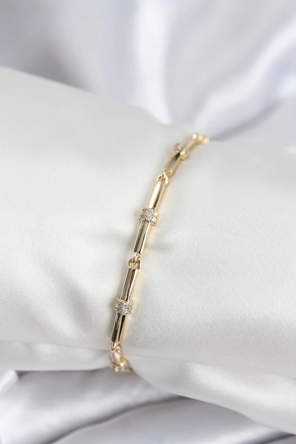 Pirinç VIP Seri Gold Renk Parçalı Model Zirkon Taşlı Kadın Bileklik