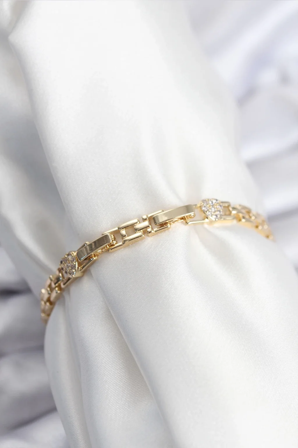 Pirinç VIP Seri Gold Renk Zincir Model Kalpli Zirkon Taşlı Kadın Bileklik