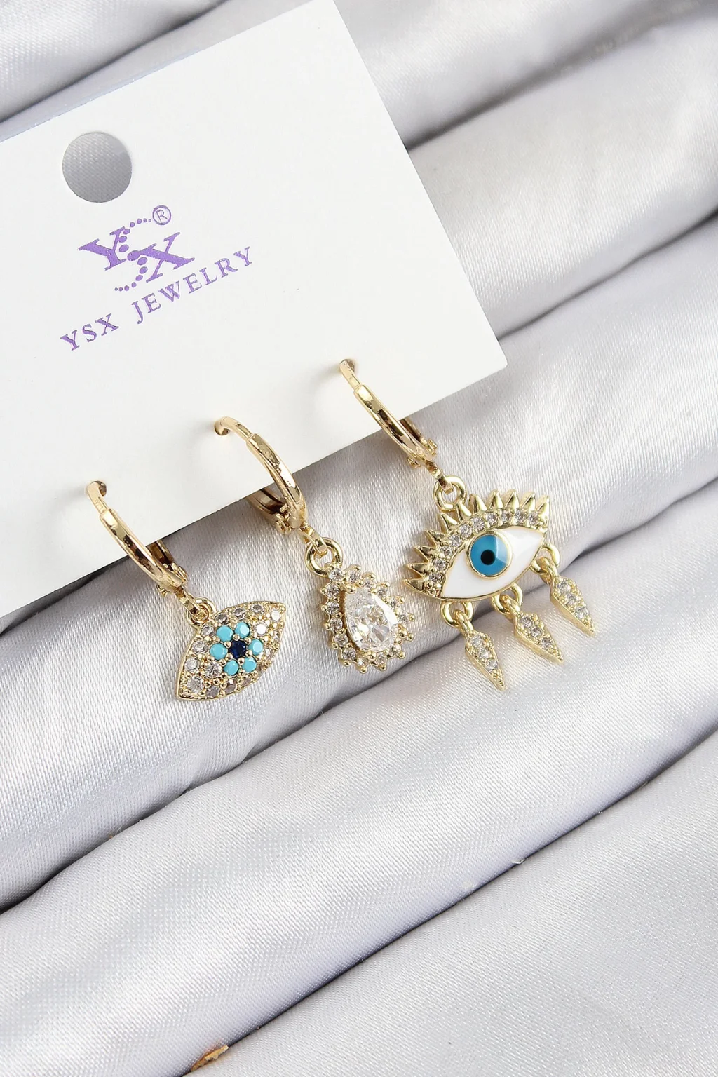 Pirinç Zirkon Taşlı 3'lü Fatma'nın Gözü Model Gold Renk Kadın Küpe