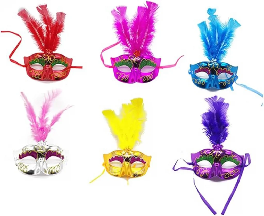 Renkli tüylü Venedik parti maskeleri ile partilerinize gizemli ve şık bir dokunuş katın. Misafirleriniz bu eşsiz maskelerle kendilerini özel hissedecek ve partiniz uzun süre hafızalardan silinmeyecek.