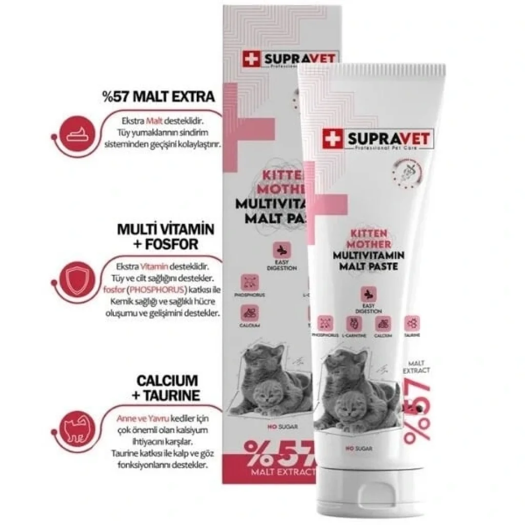 Supravet Kalsiyum ve Taurinli Hamile ve Yavru Kediler için Multi Vitamin Kedi Malt Macunu 30 Gr
