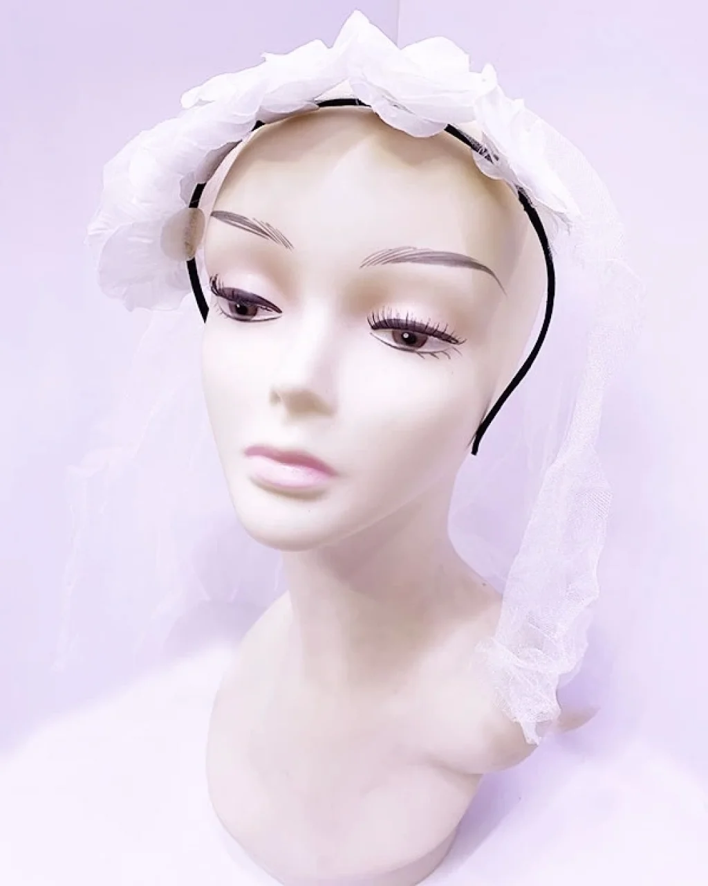 Yumuşak beyaz ağ ve beyaz flora ve fauna kafa bandına sahip olan bu, gecenizi ve bekarlığa veda partinizi kutlamak için mükemmel bir aksesuardır