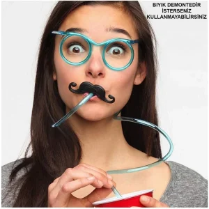 Pipetli Parti Gözlüğü - Çocuk Ve Yetişkin Bıyıklı Pipet Gözlük Yeşil Renk 18x14 Cm