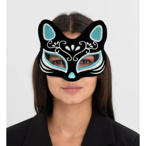 Siyah Renk Süet Kaplama Üzeri Gümüş Mavi Simli Kedi Maskesi 17x14 Cm